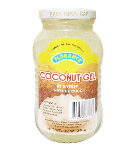 Nata de coco is chewy, translucent jelly-like coconut cubes sweetened in syrup. Nata de coco is mainly made from fermented coconut water. Pure nata de coco has no flavor of its own, which is why it is often mixed with fruit drinks, syrup or fresh fruit. Sweetened nata de coco is used as a dessert.