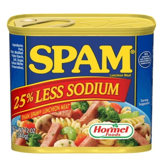 Our 25% Less Sodium SPAM® provides the same delicious SPAM® Classic flavor with 25% less sodium. Sizzle it up and add it to eggs for breakfast, on a sandwich for lunch or with rice for dinner. The possibilities are endless with this versatile & delicious meat!